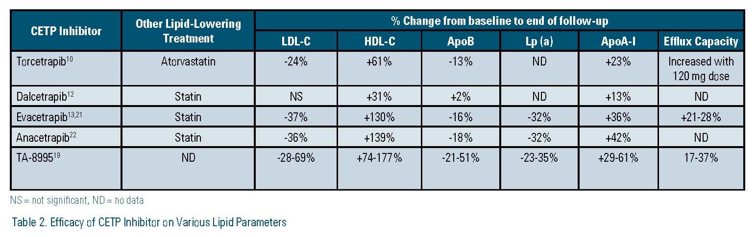 A major area of focus over the past 10 years has been modulation of cholesteryl ester transfer protein (CETP). Interest in this target was based on several observations, including: