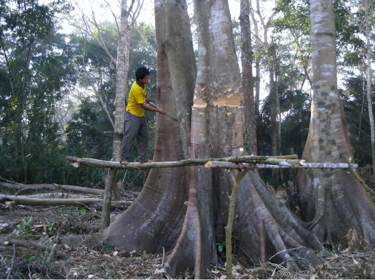 Figure 3. Tsimane man clearing a plot of trees for slash and burn agriculture.