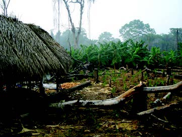 Figure 6. Tsimane thatched roof home and horticultural plot.